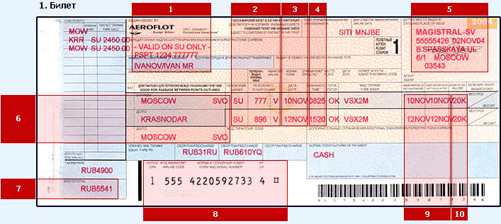 Каждый авиабилет содержит исчерпывающую информацию обо всех подробностях полета, маршрута, расчета тарифа и ограничениях, накладываемых данным тарифом на перевозку